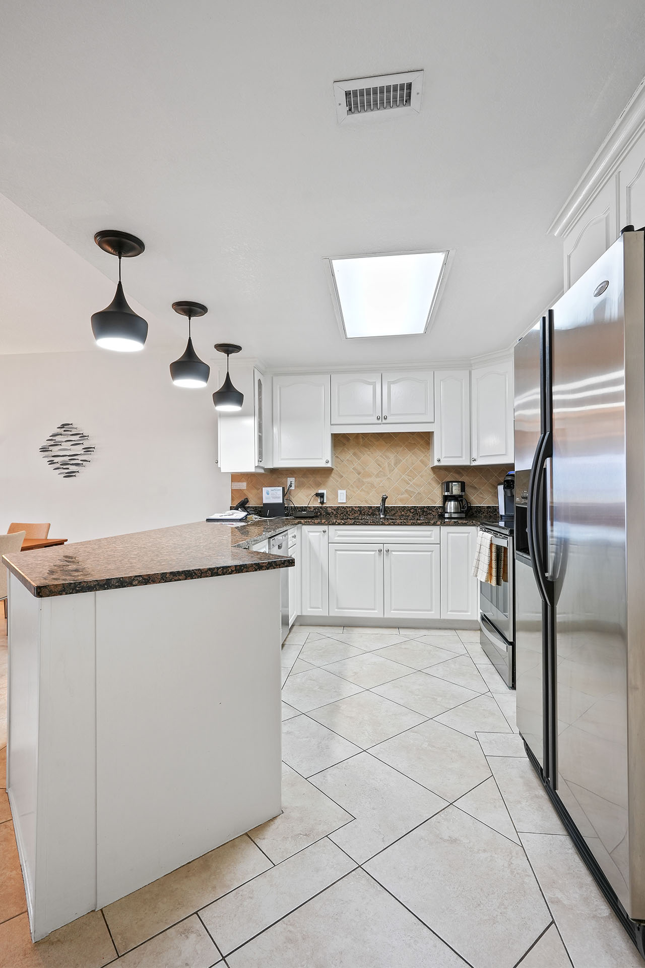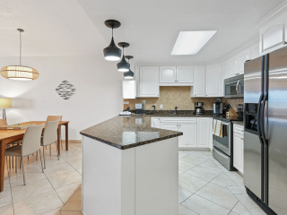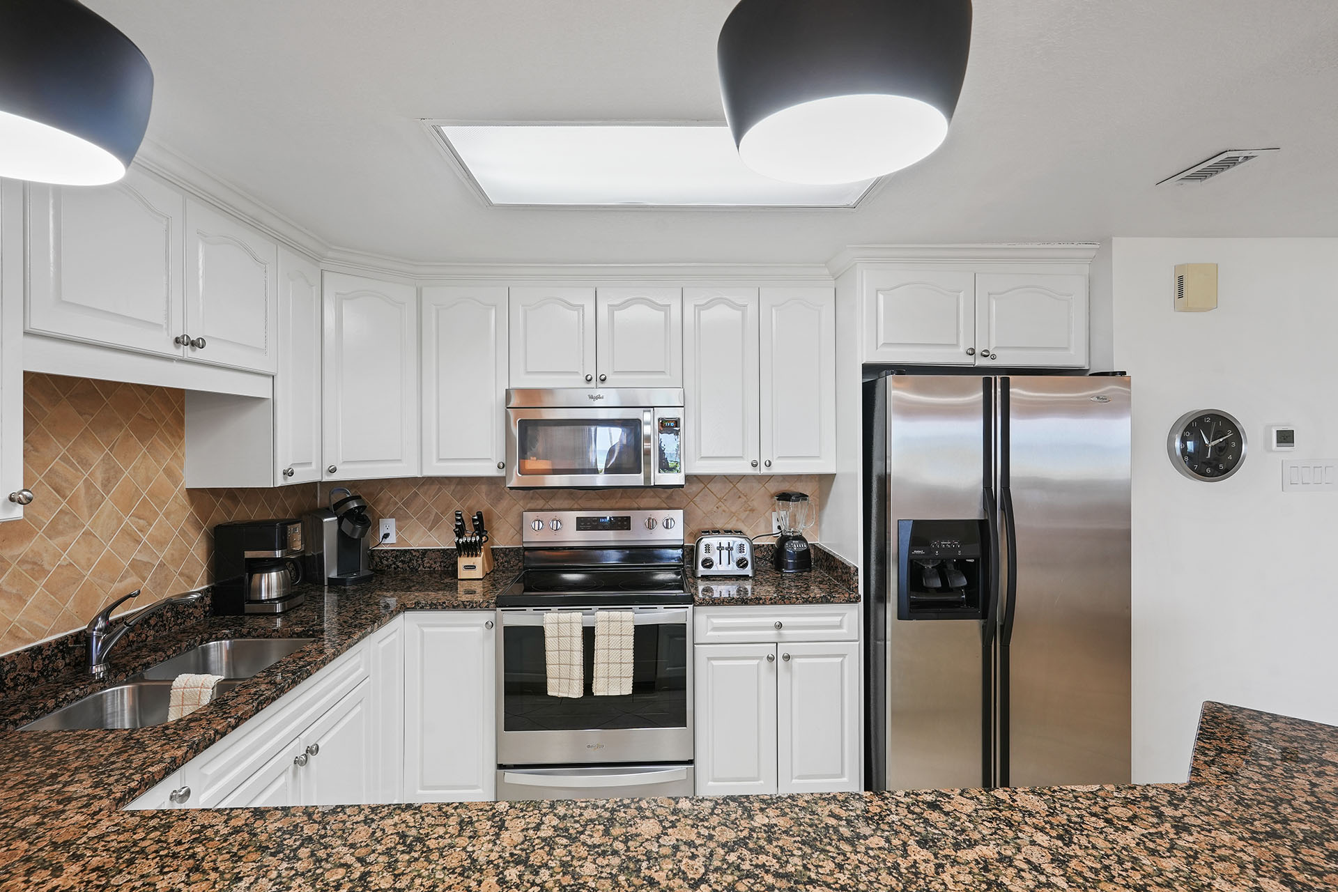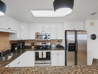 Prepare meals with ease in the fully equipped kitchen featuring quartz counters and stainless-steel appliances, perfect for cooking and entertaining.